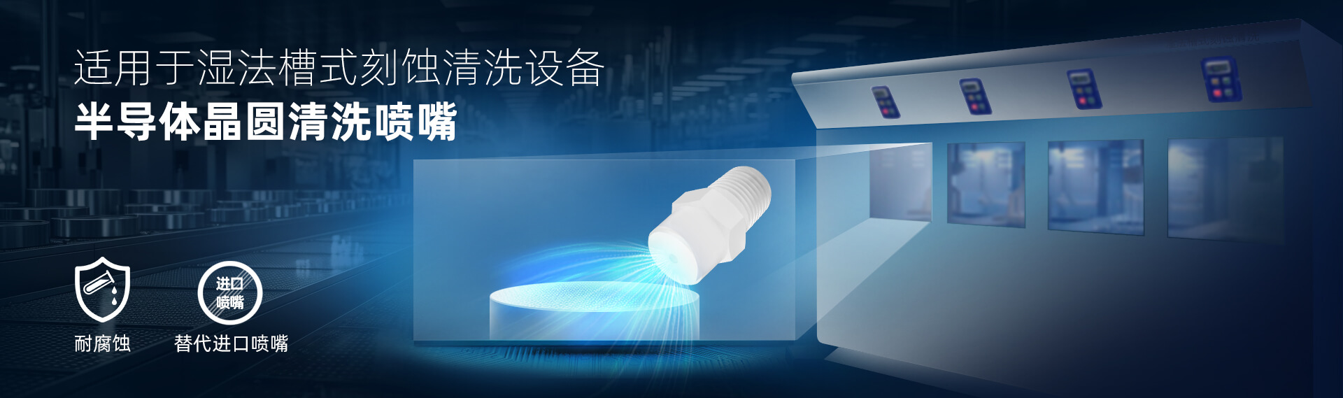 產(chǎn)品:實(shí)心錐噴嘴 應(yīng)用: 噴嘴安裝于槽式濕法刻蝕設(shè)備里,通過配合不同化學(xué)藥液,有效去除晶圓表面顆粒、有機(jī)物和金屬離子,應(yīng)用于晶圓制造、MEMS制造,以及功率器件制造領(lǐng)域。 工業(yè)噴嘴專業(yè)制造商🔥 品質(zhì)可靠·規(guī)格齊...
